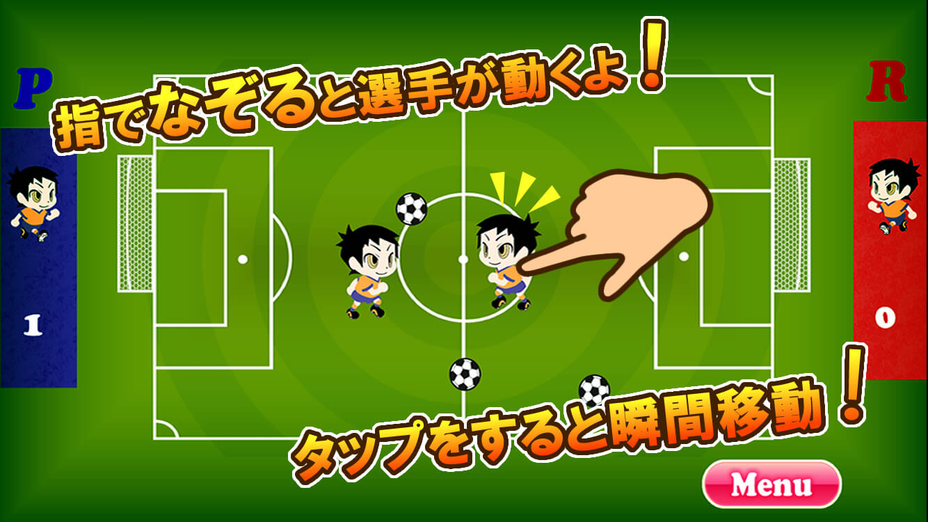 ▼ 操作は指一本! 選手をなぞるだけで簡単に操作が出来るぞ。 そのまま弾き飛んだボールを相手のゴールに叩きこめ!