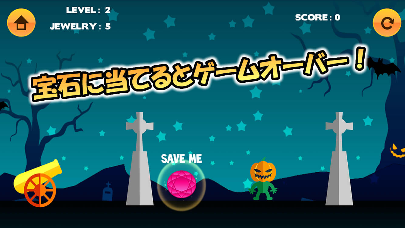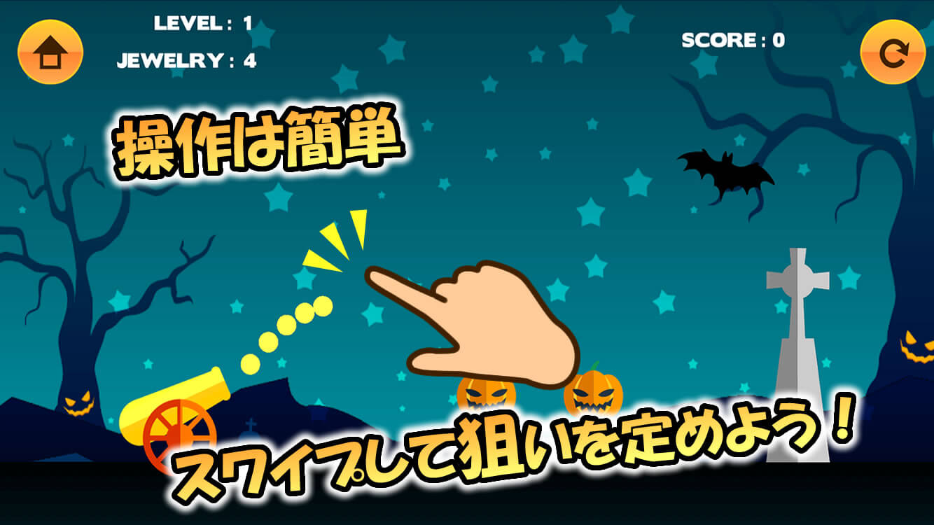 ジュエルを当て、お化けカボチャをやっつけろ!