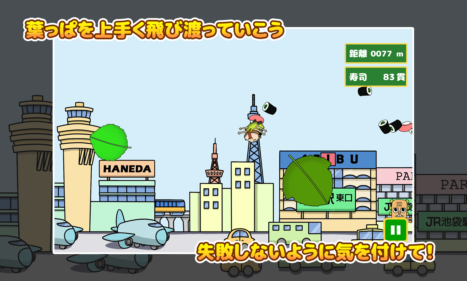 画面をタッチして回転する葉っぱを飛び移っていこう!