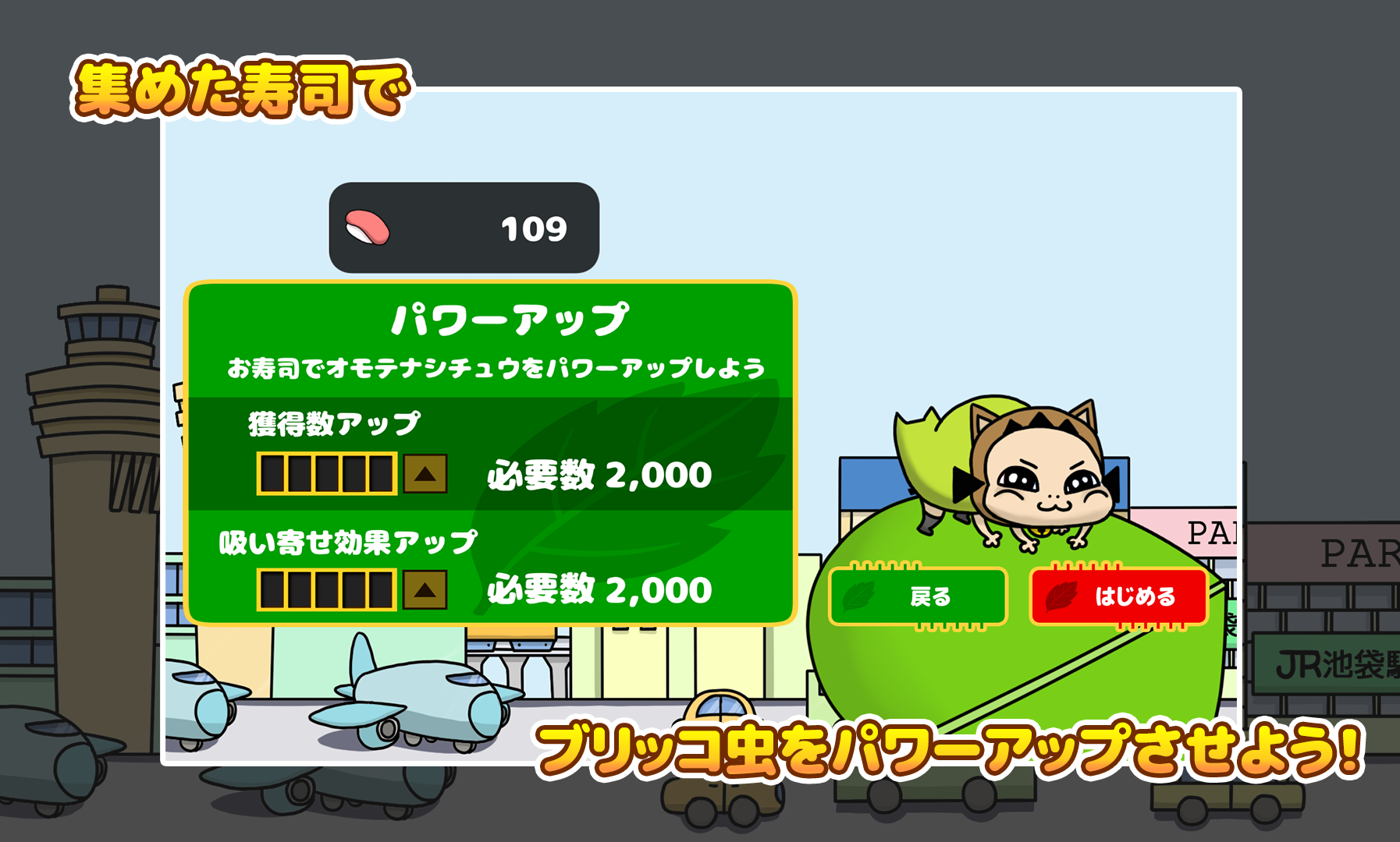 集めた寿司を使ってブリッコ虫をパワーアップ!